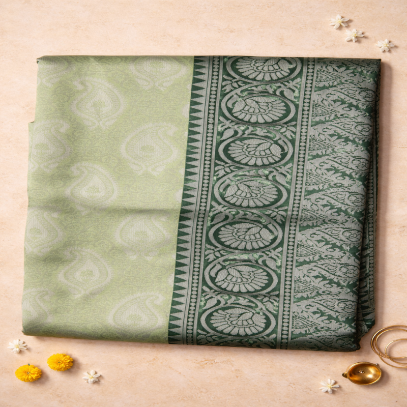 100% Polyester (Lichi Base) Length: 6.10 m Includes blouse piece