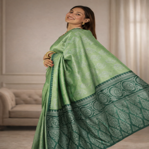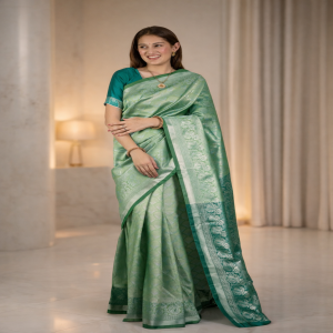 The first image is the actual product; the others show similar designs to help you visualize how your chosen saree will look when worn.