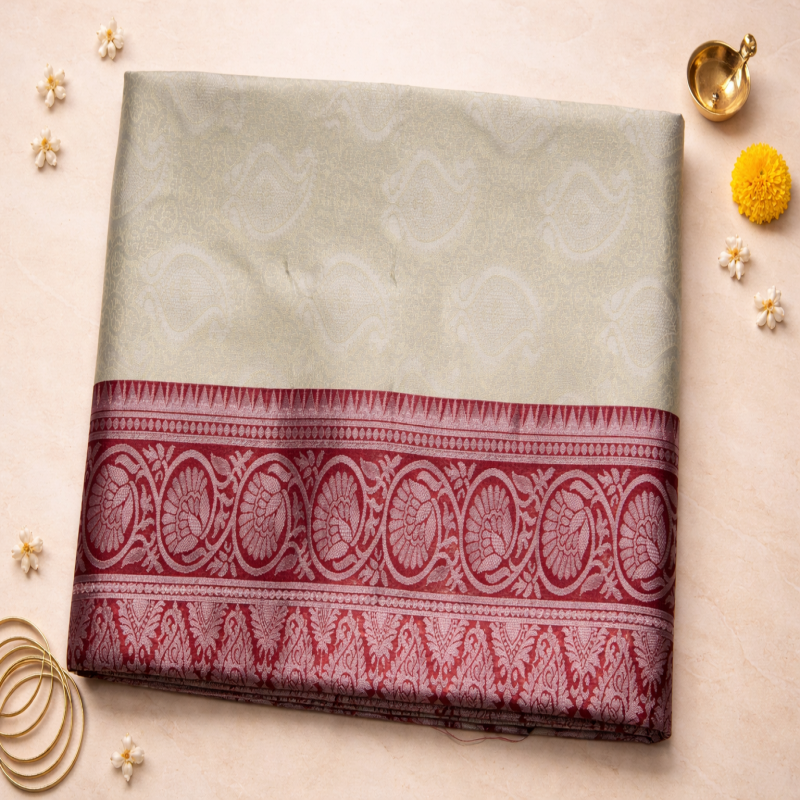 100% Polyester (Lichi Base) Length: 6.10 m Includes blouse piece
