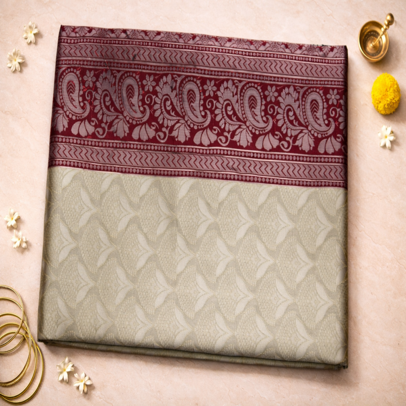 100% Polyester (Lichi Base) Length: 6.10 m Includes blouse piece