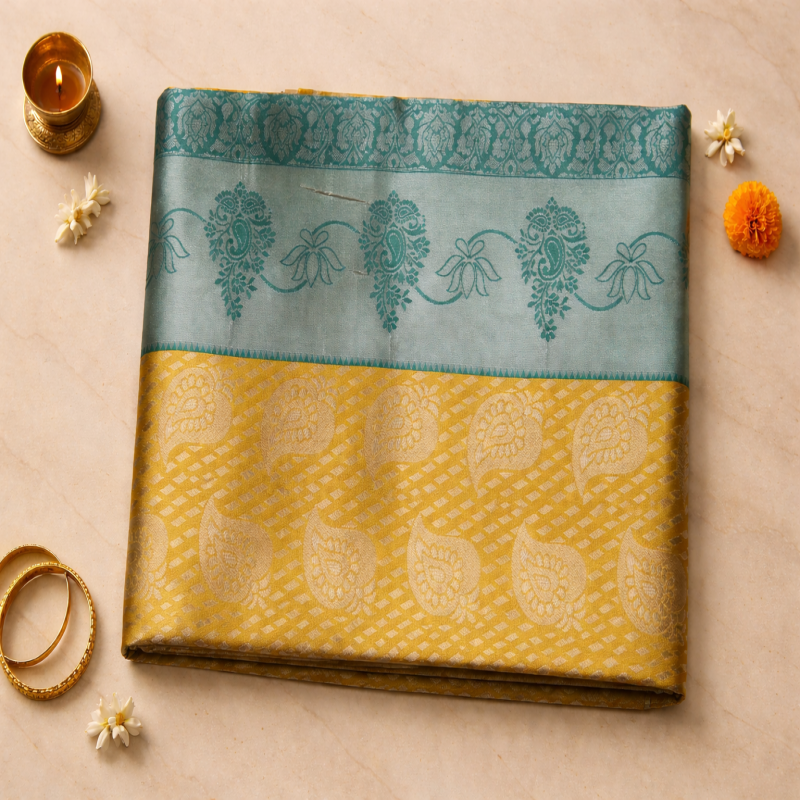 100% Polyester (Lichi Base) Length: 6.10 m Includes blouse piece