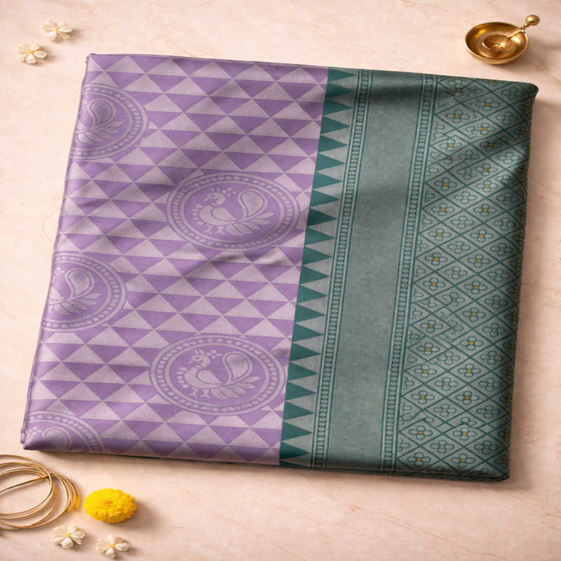 100% Polyester (Lichi Base) Length: 6.10 m Includes blouse piece